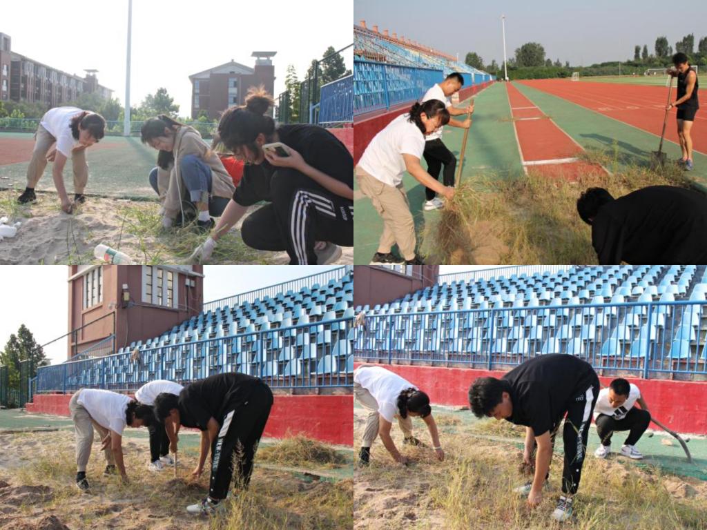 开学之际,为给同学们营造一个美丽整洁的体育运动环境,培养同学们的劳动观念和无私奉献的精神,9月5日下午,体育教学部组织体育部学生干部、勤工助学学生开展运动场除草美化活动。